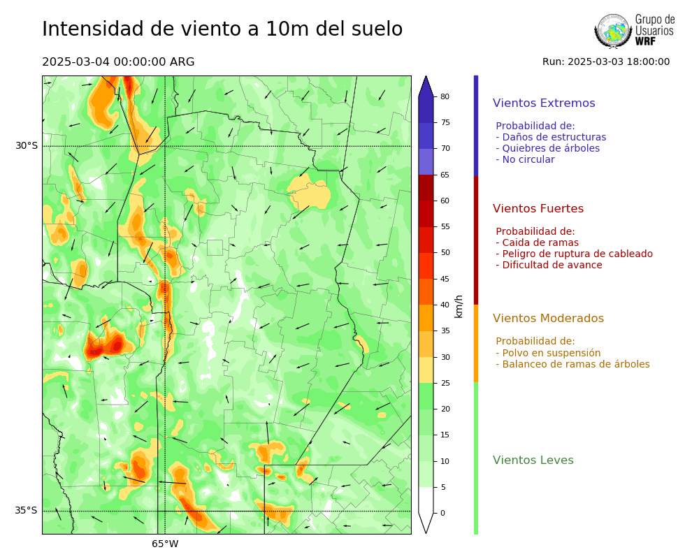 • Intensidad máxima: 31.99 km/h (04/03/2025 04hs.)