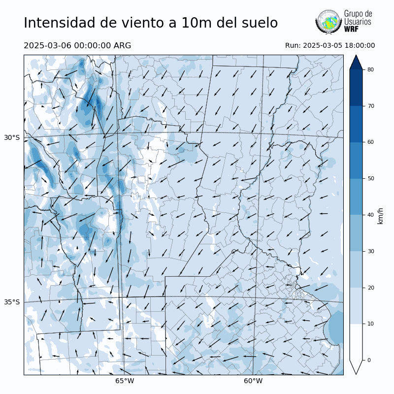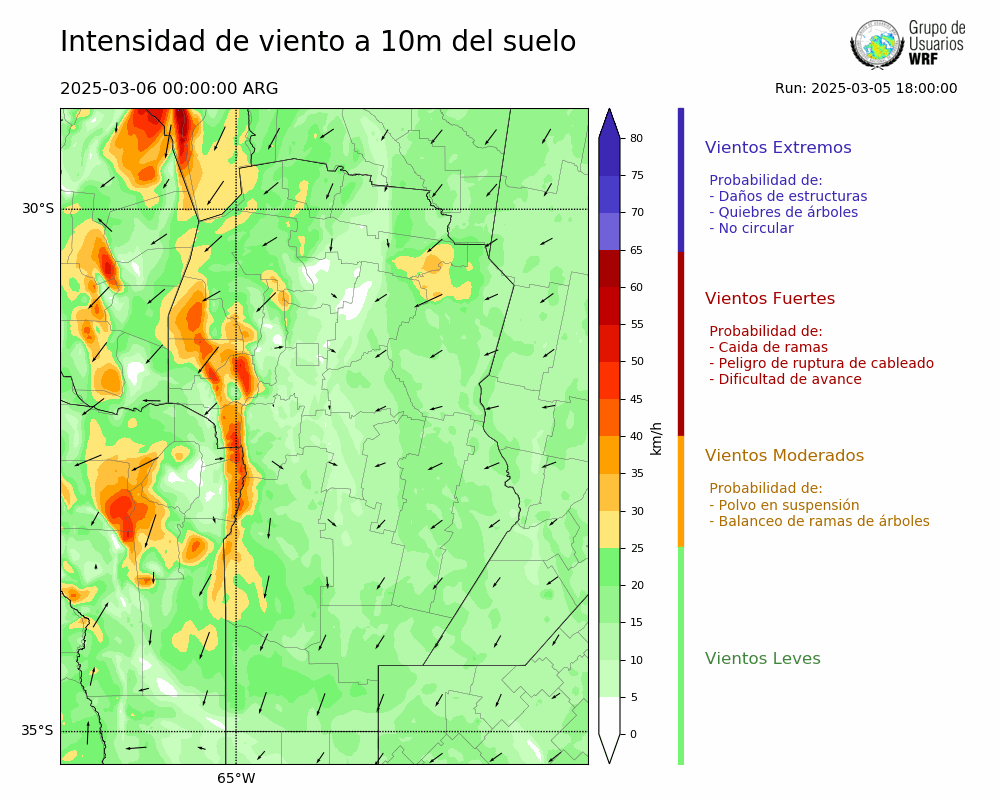 • Intensidad máxima: 40.49 km/h (06/03/2025 09hs.)