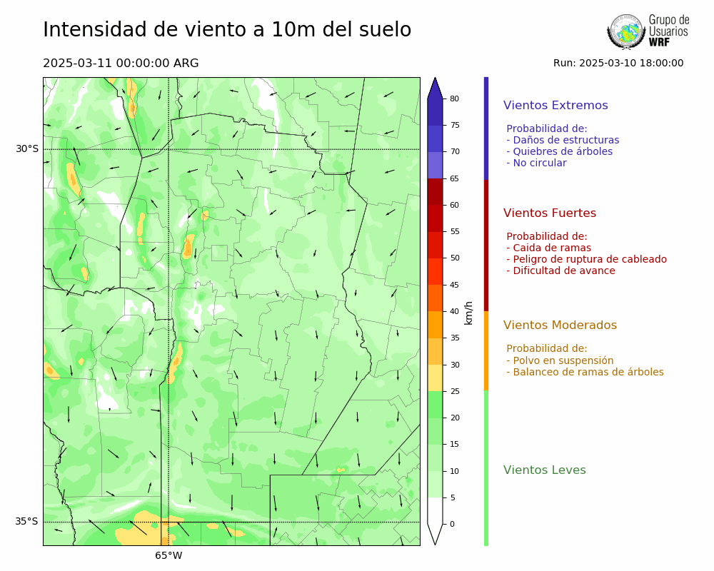 • Intensidad máxima: 25.70 km/h (11/03/2025 04hs.)