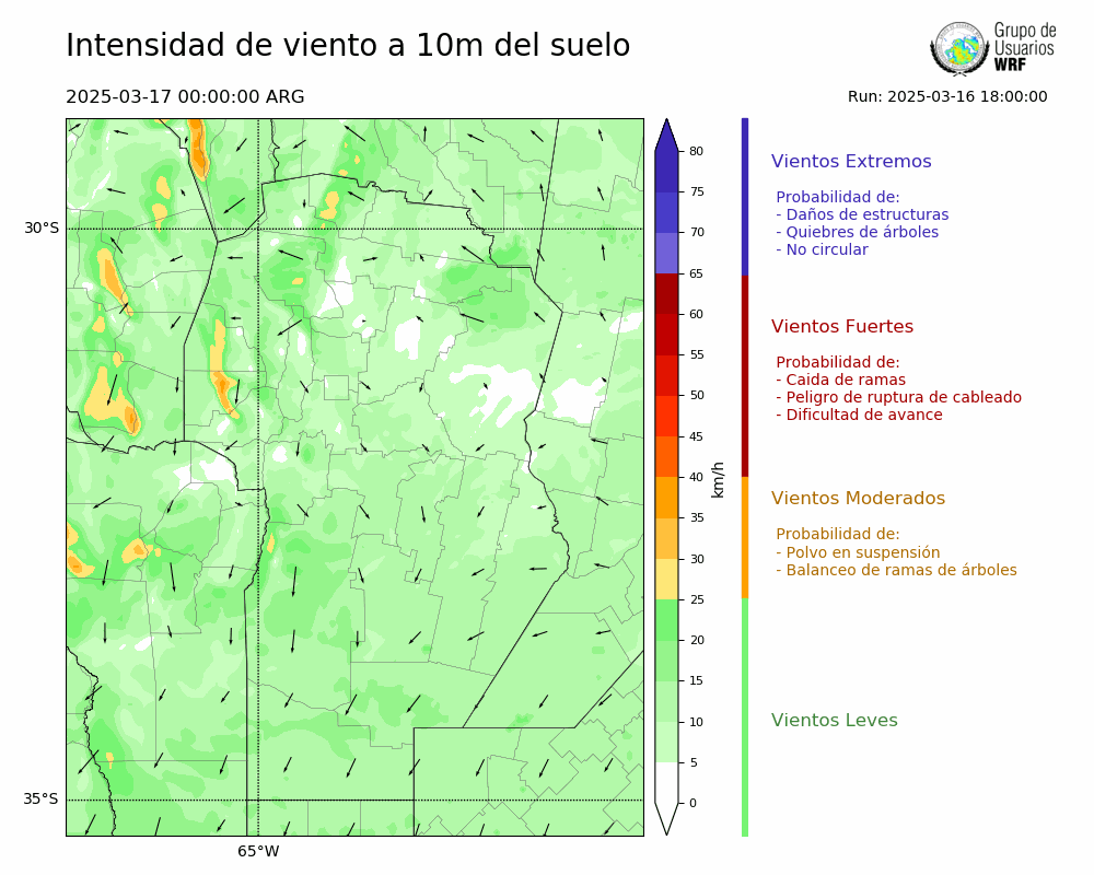 • Intensidad máxima: 15.80 km/h (19/03/2025 04hs.)