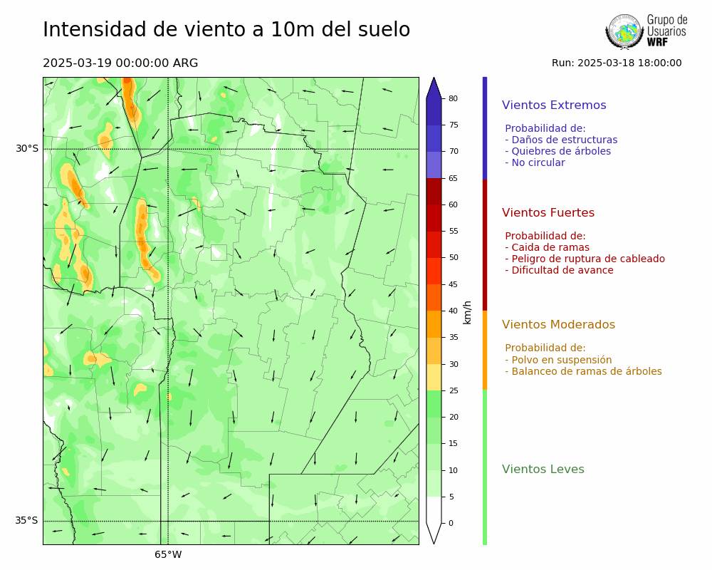 • Intensidad máxima: 6.47 km/h (19/03/2025 05hs.)
