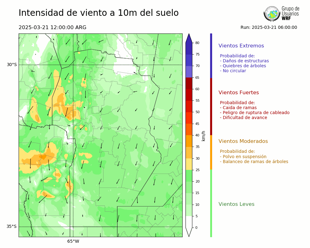 • Intensidad máxima: 4.68 km/h (22/03/2025 08hs.)
