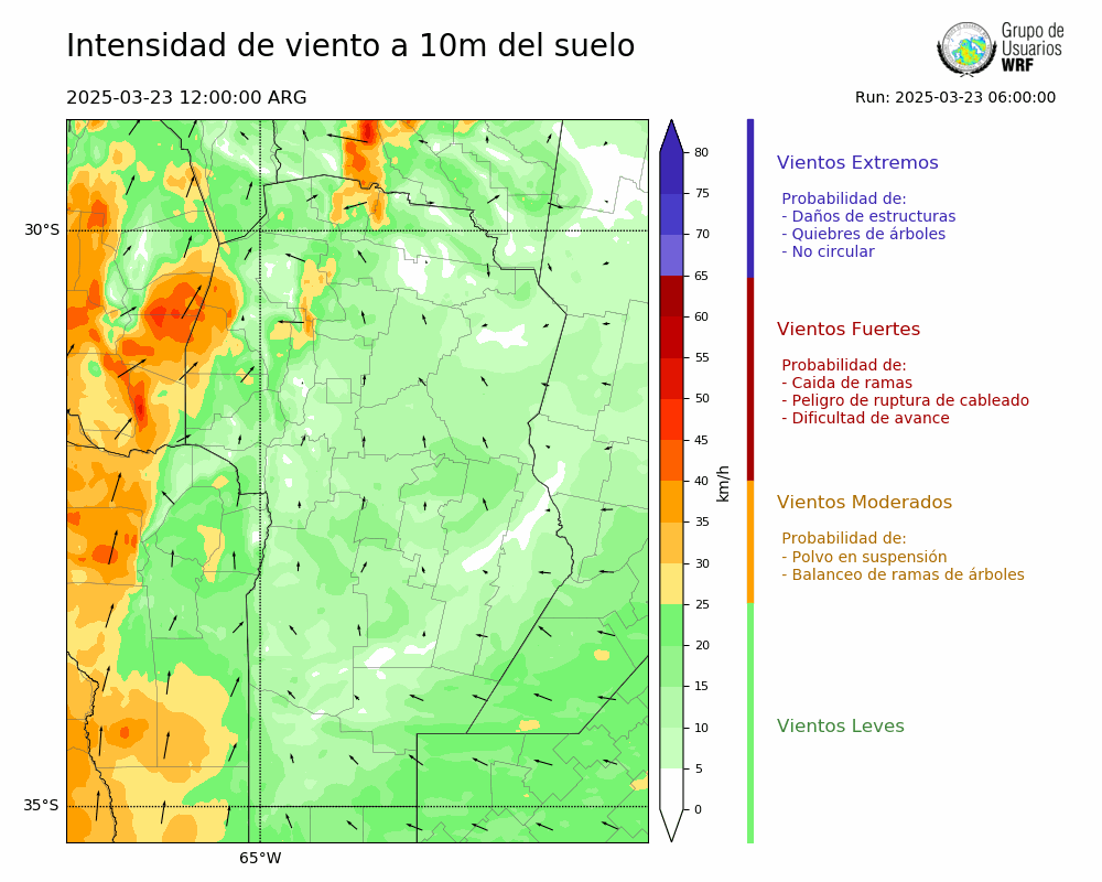 • Intensidad máxima: 10.40 km/h (24/03/2025 08hs.)