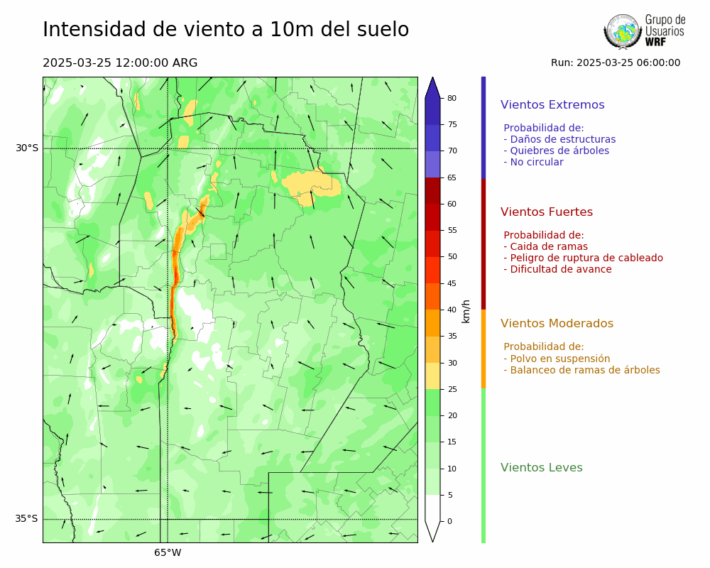 • Intensidad máxima: 16.50 km/h (25/03/2025 12hs.)