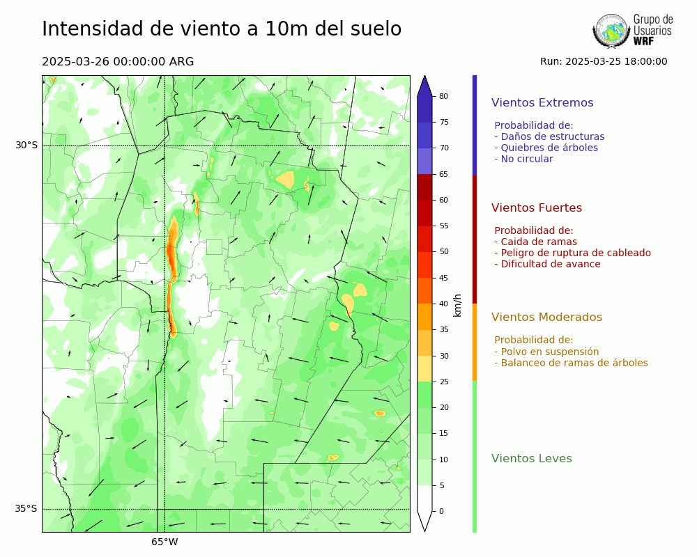 • Intensidad máxima: 7.72 km/h (26/03/2025 01hs.)