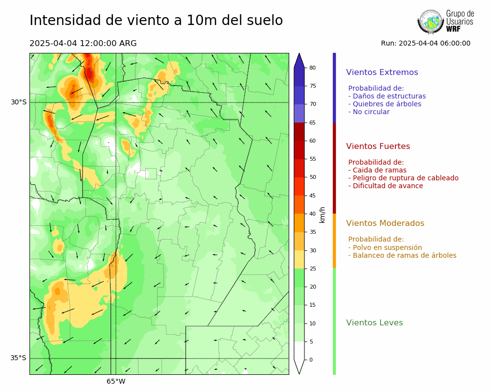 • Intensidad máxima: 9.63 km/h (04/04/2025 20hs.)