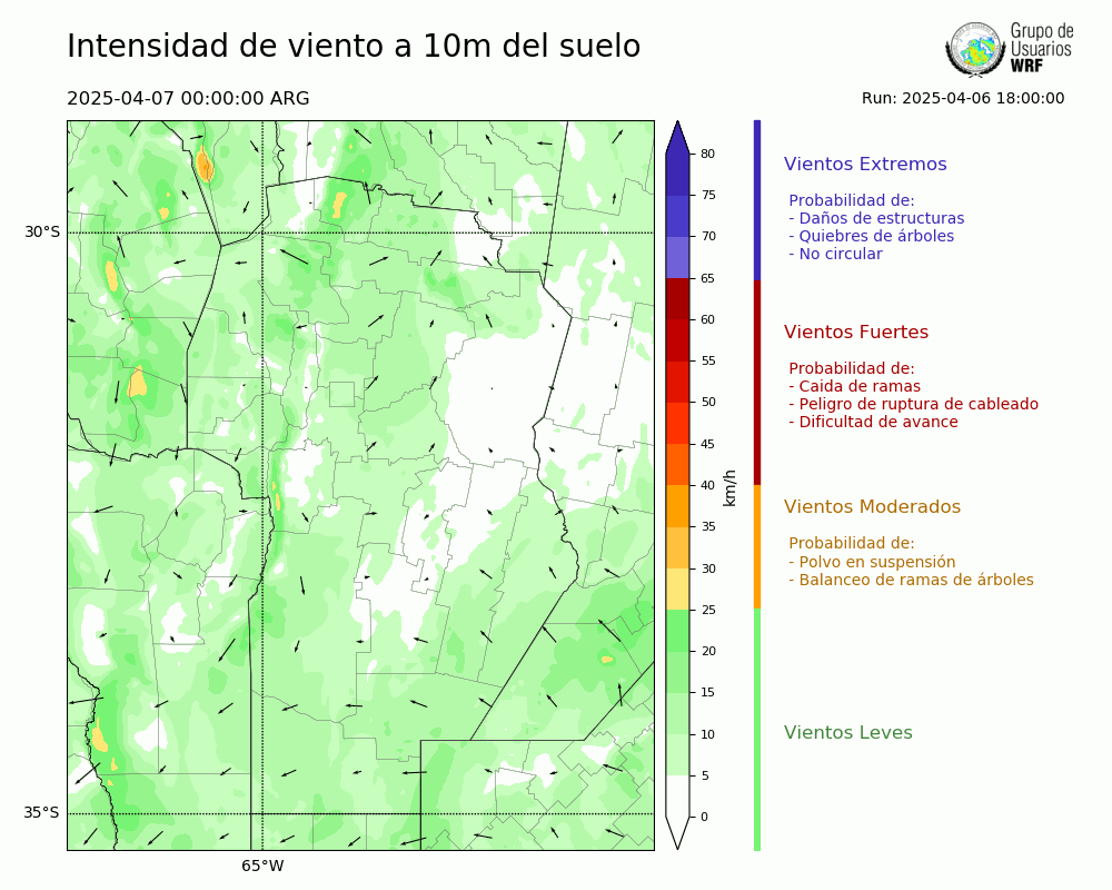 • Intensidad máxima: 8.63 km/h (08/04/2025 02hs.)