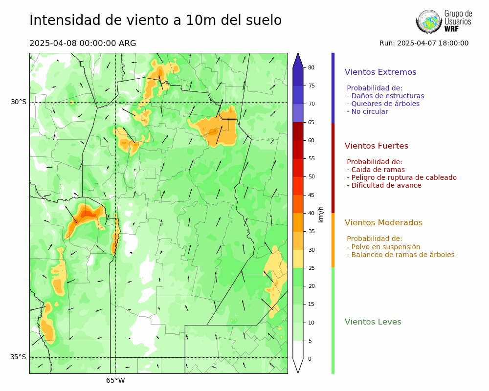 • Intensidad máxima: 14.91 km/h (08/04/2025 10hs.)