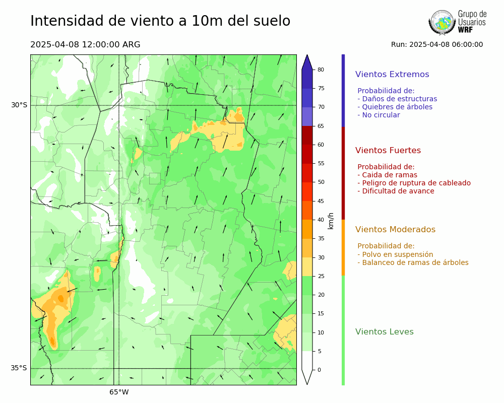 • Intensidad máxima: 6.72 km/h (09/04/2025 08hs.)