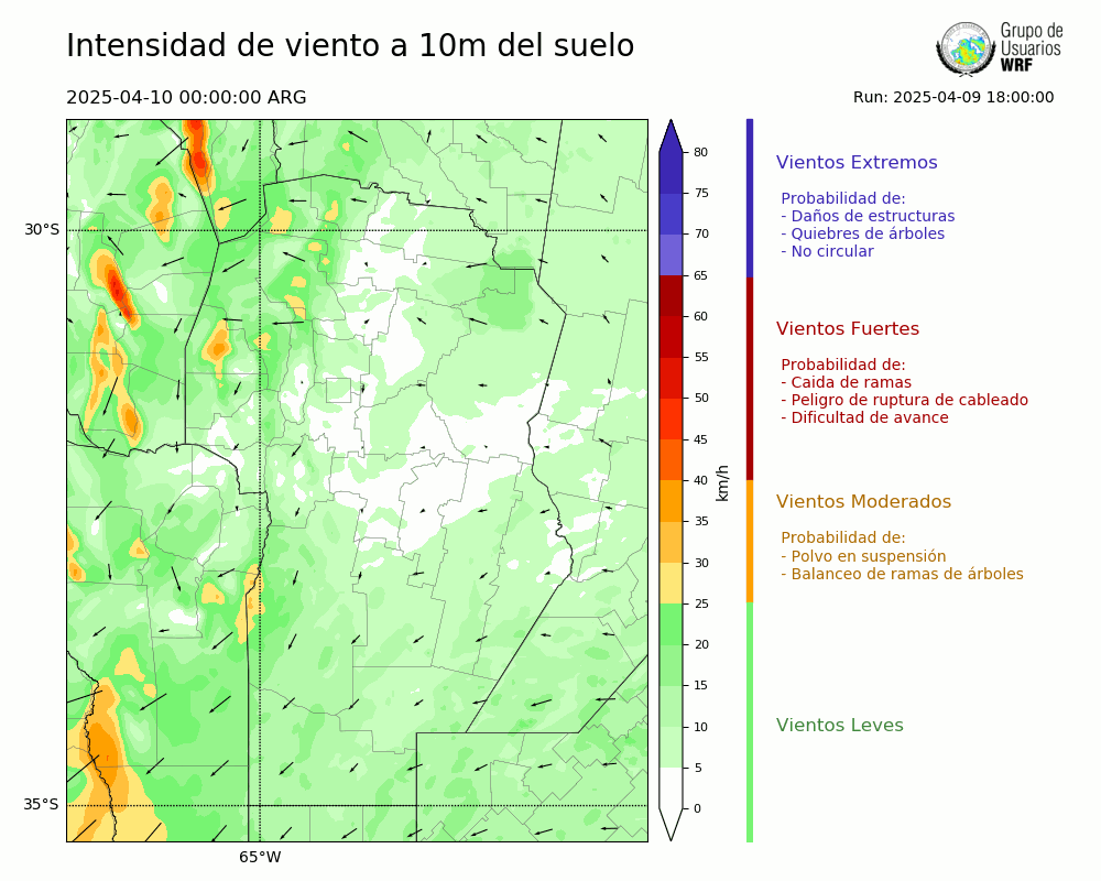 • Intensidad máxima: 8.55 km/h (10/04/2025 10hs.)