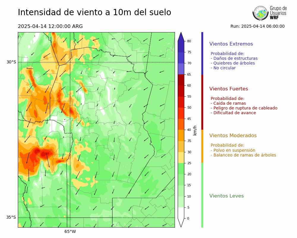 • Intensidad máxima: 14.65 km/h (16/04/2025 22hs.)