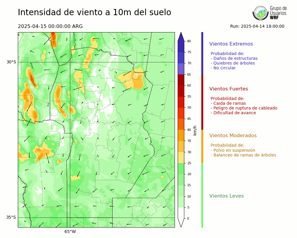 • Intensidad máxima: 19.01 km/h (15/04/2025 07hs.)