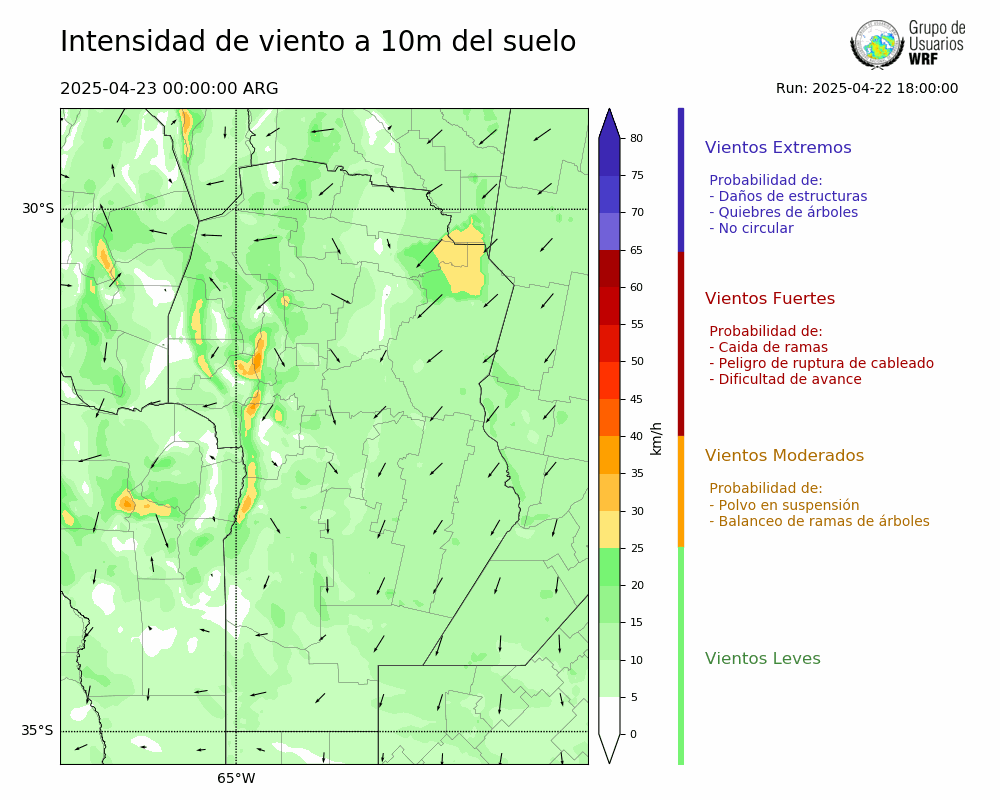 • Intensidad máxima: 8.70 km/h (23/04/2025 03hs.)