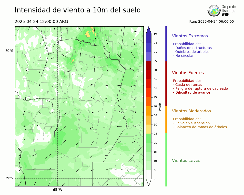 • Intensidad máxima: 12.35 km/h (24/04/2025 15hs.)