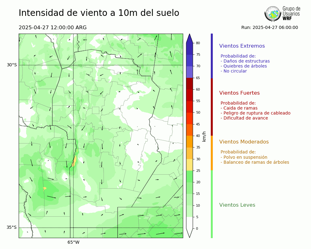 • Intensidad máxima: 11.12 km/h (27/04/2025 18hs.)