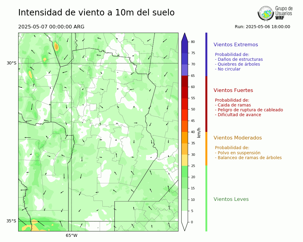 • Intensidad máxima: 10.42 km/h (07/05/2025 01hs.)