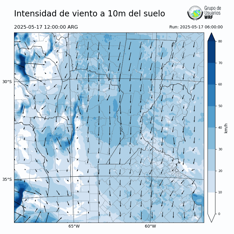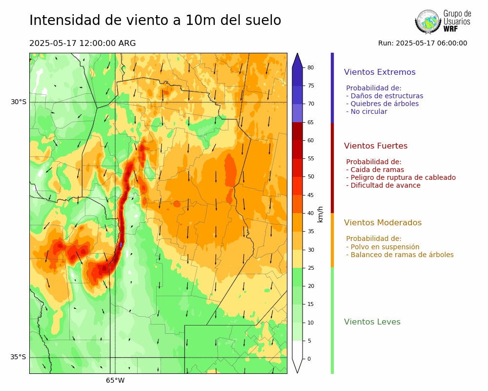 • Intensidad máxima: 10.23 km/h (17/05/2025 12hs.)