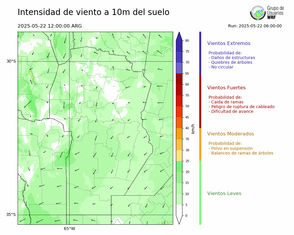 • Intensidad máxima: 11.95 km/h (22/05/2025 16hs.)
