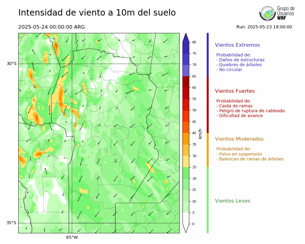 • Intensidad máxima: 17.69 km/h (24/05/2025 01hs.)