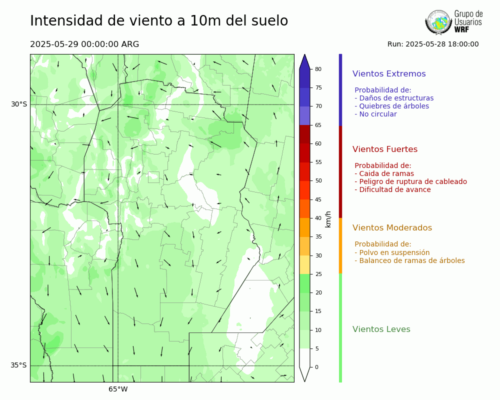 • Intensidad máxima: 9.68 km/h (29/05/2025 10hs.)