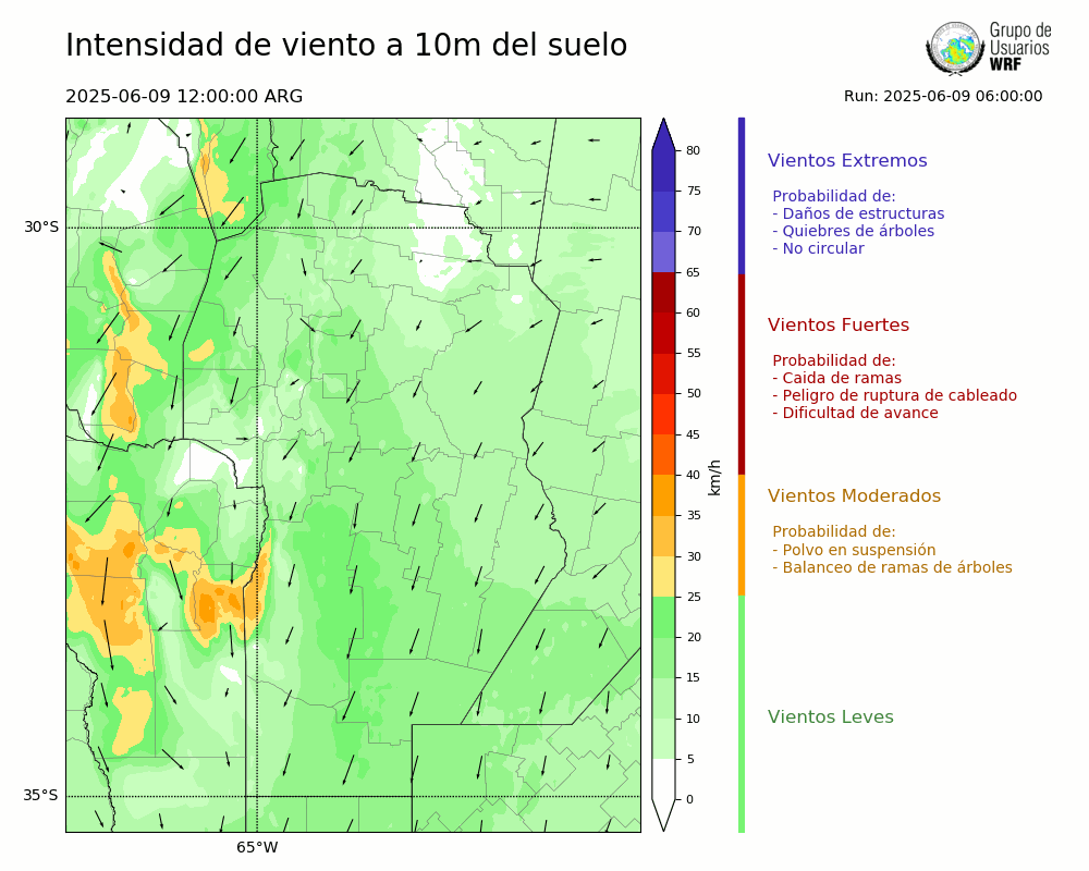 • Intensidad máxima: 16.88 km/h (09/06/2025 17hs.)