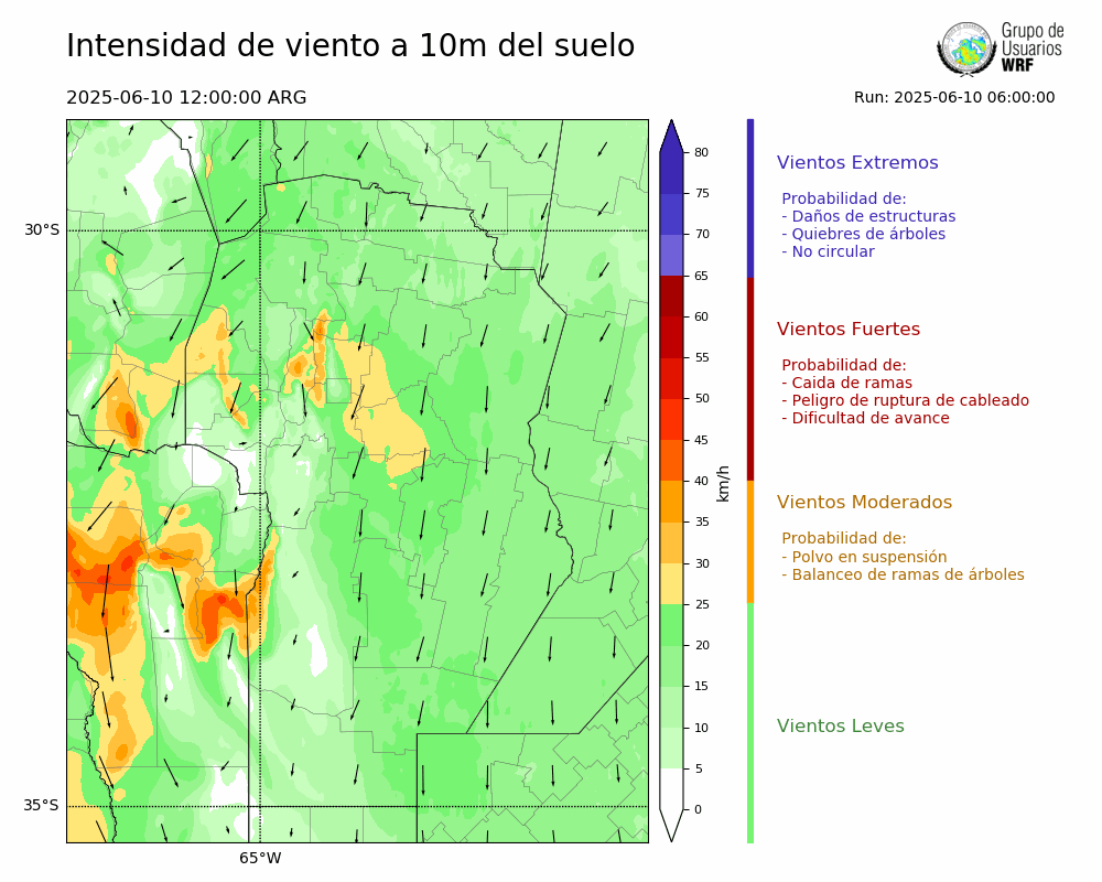 • Intensidad máxima: 19.57 km/h (10/06/2025 18hs.)