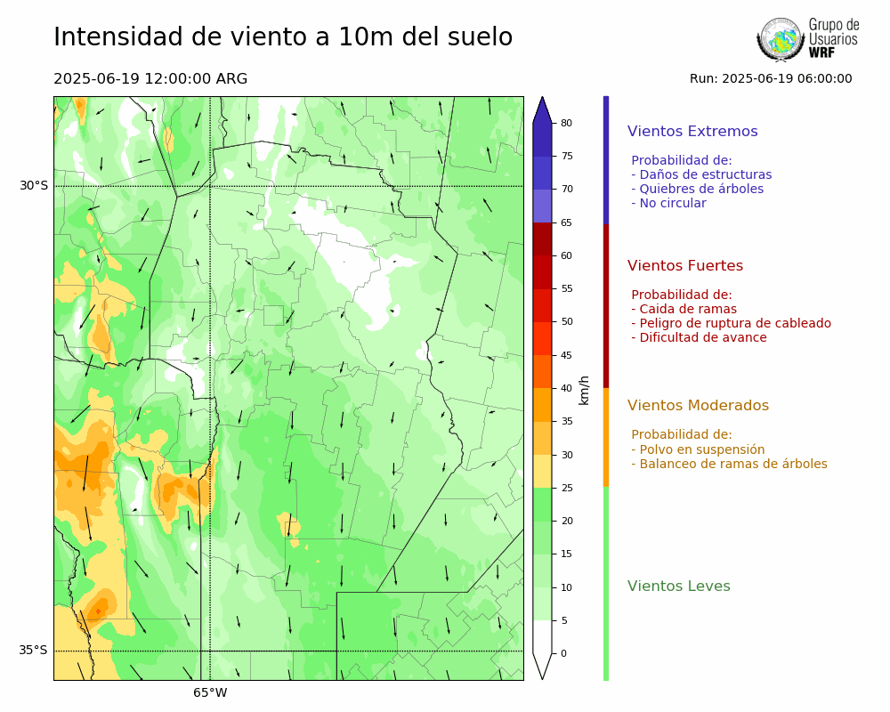 • Intensidad máxima: 16.15 km/h (19/06/2025 18hs.)