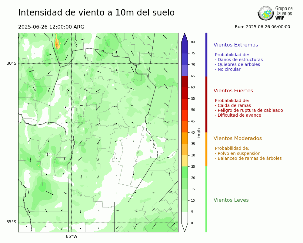 • Intensidad máxima: 10.70 km/h (26/06/2025 18hs.)