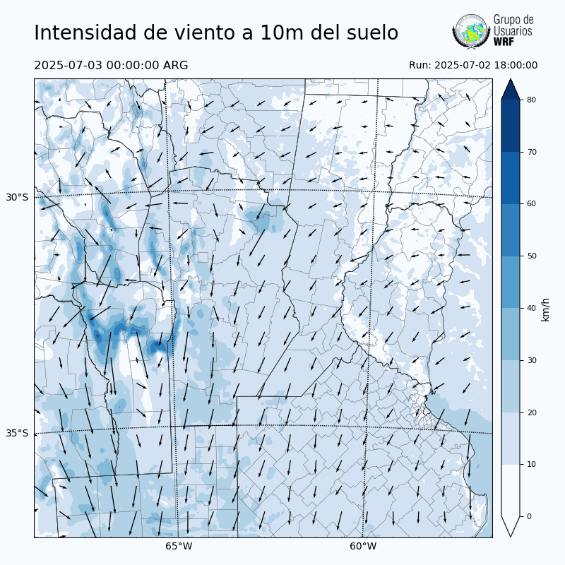 • Intensidad máxima: 10.50 km/h (03/07/2025 05hs.)