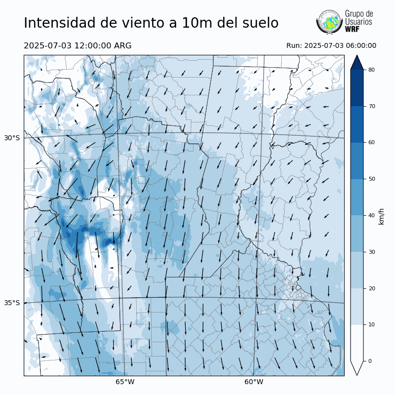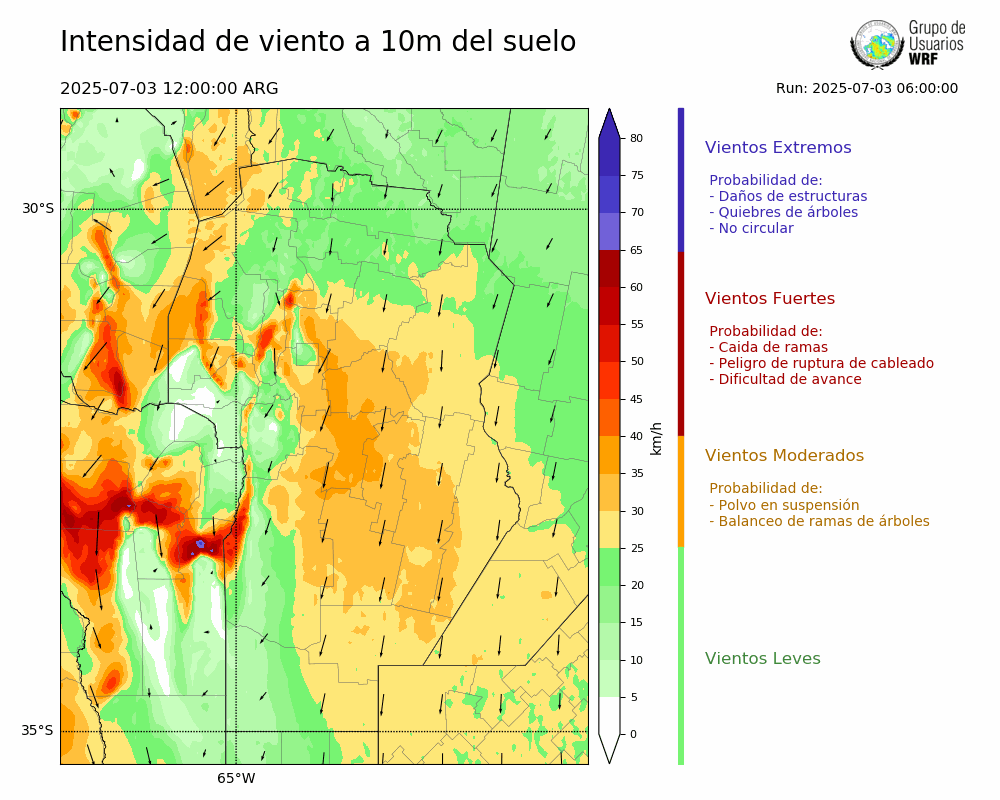 • Intensidad máxima: 3.74 km/h (05/07/2025 05hs.)