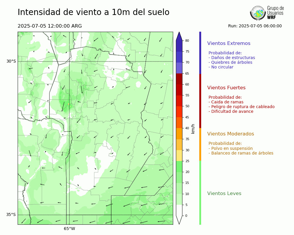 • Intensidad máxima: 13.57 km/h (05/07/2025 17hs.)
