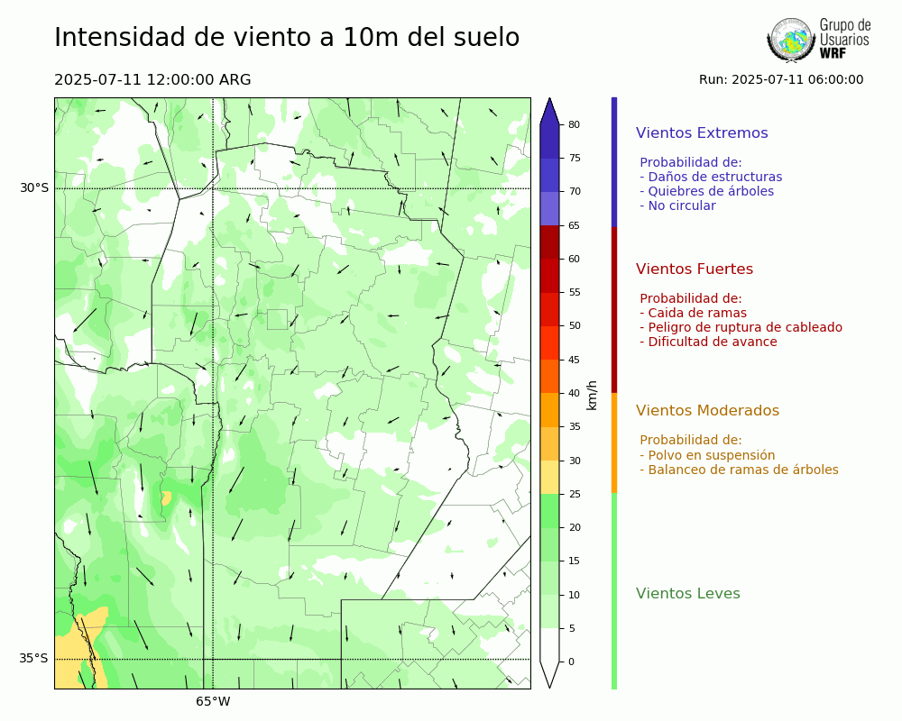 • Intensidad máxima: 13.39 km/h (11/07/2025 18hs.)