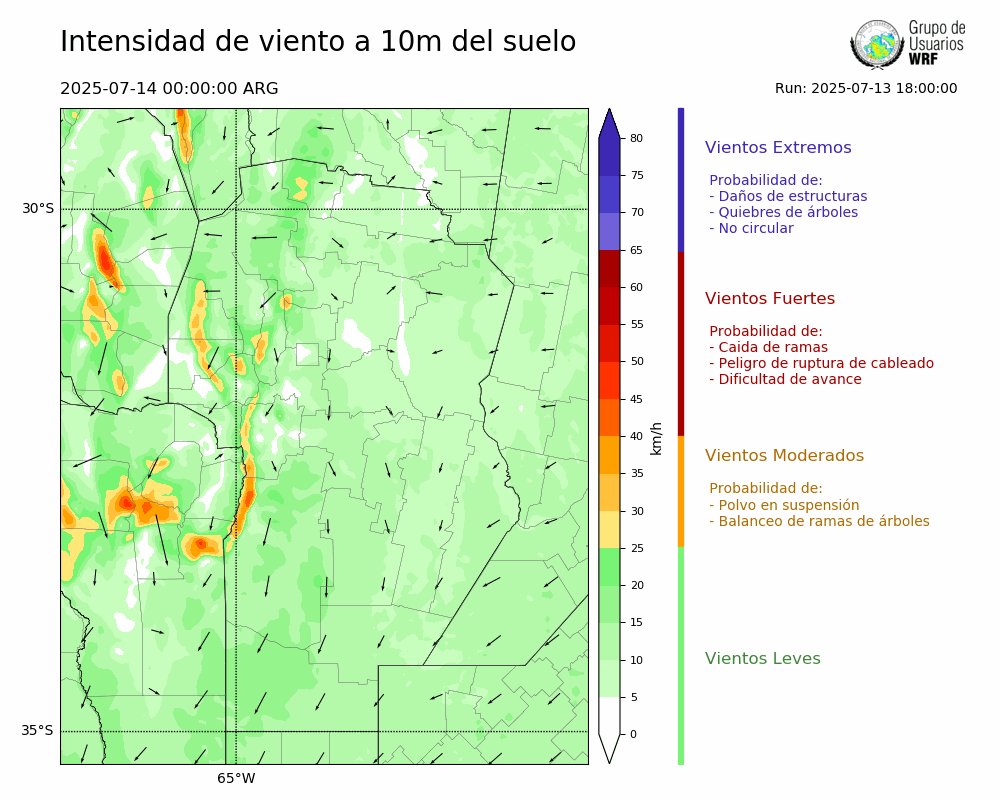 • Intensidad máxima: 14.45 km/h (14/07/2025 11hs.)