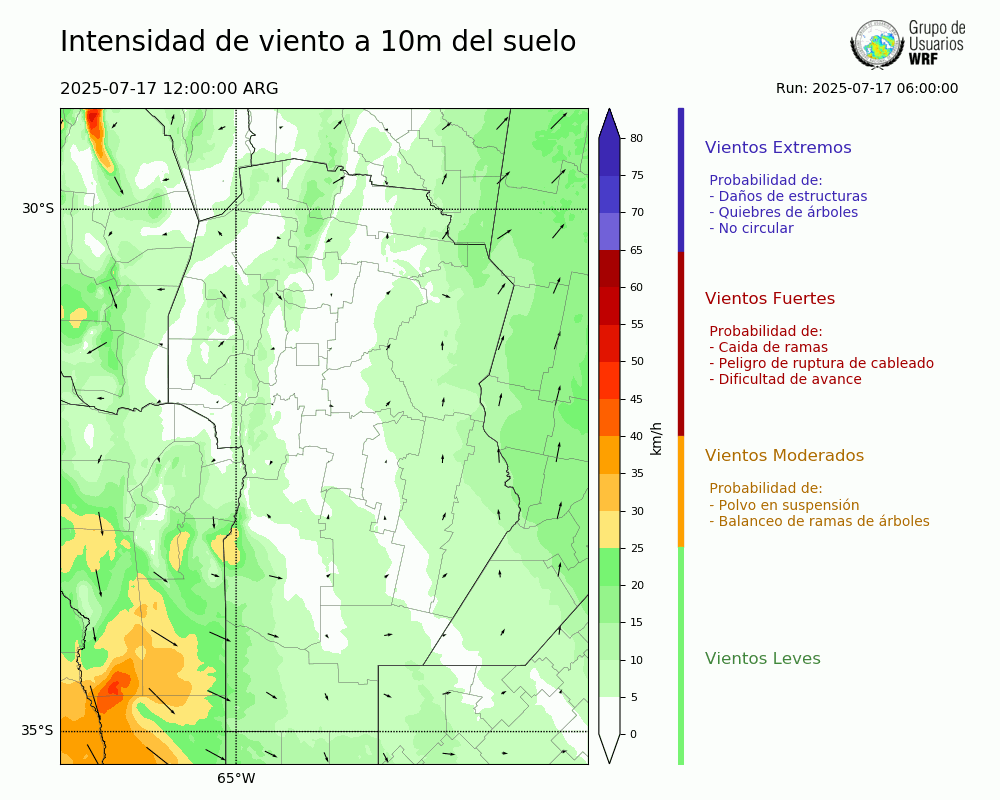 • Intensidad máxima: 10.72 km/h (17/07/2025 18hs.)