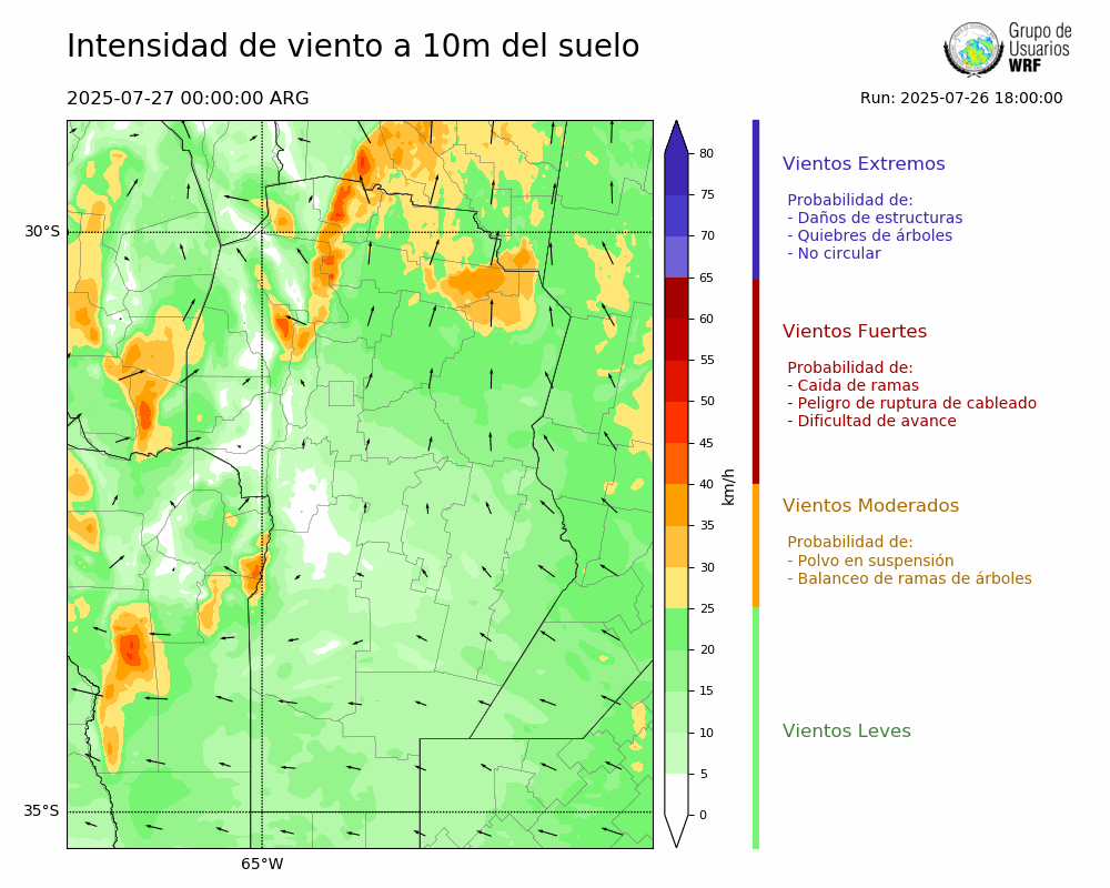 • Intensidad máxima: 11.57 km/h (27/07/2025 08hs.)