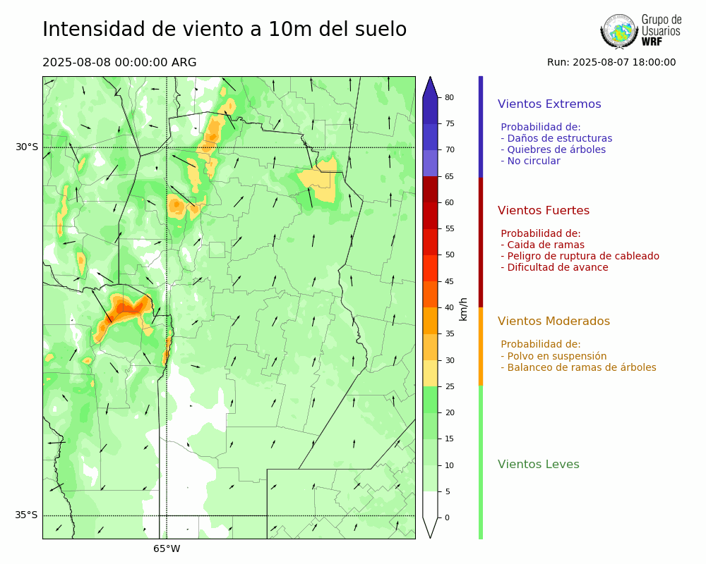 • Intensidad máxima: 7.12 km/h (08/08/2025 01hs.)