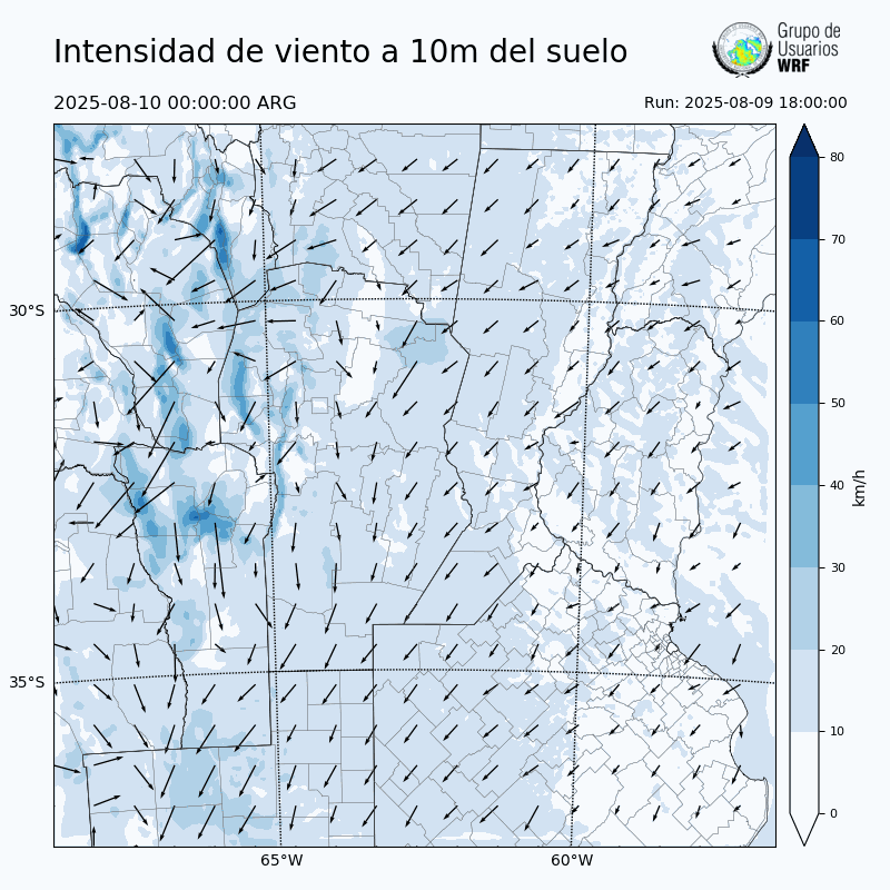 • Intensidad máxima: 8.91 km/h (10/08/2025 05hs.)