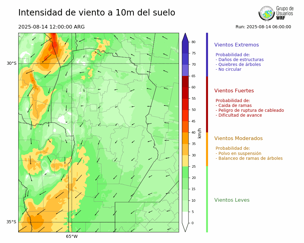 • Intensidad máxima: 13.37 km/h (14/08/2025 16hs.)