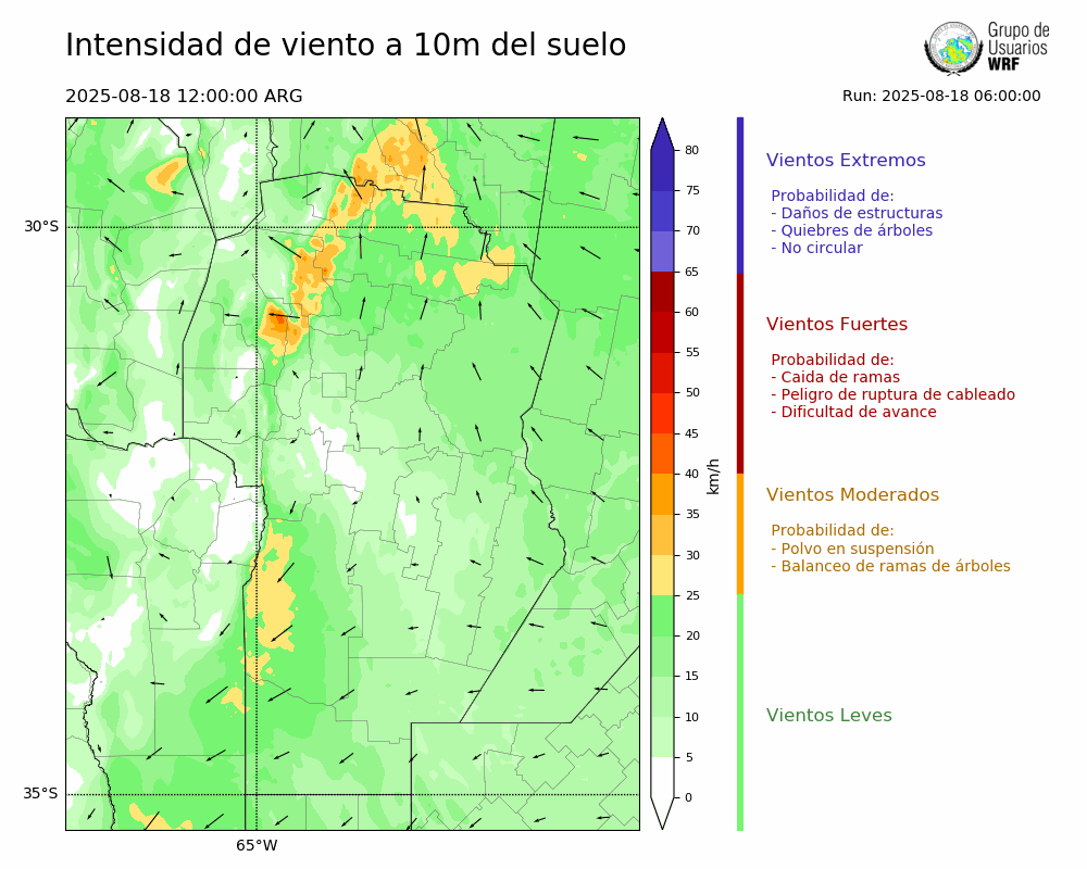 • Intensidad máxima: 12.39 km/h (18/08/2025 21hs.)