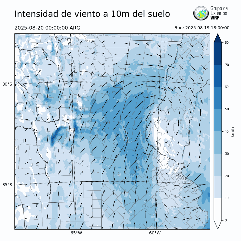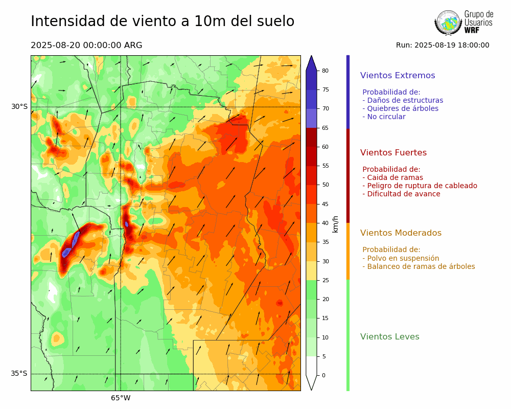 • Intensidad máxima: 26.99 km/h (20/08/2025 00hs.)