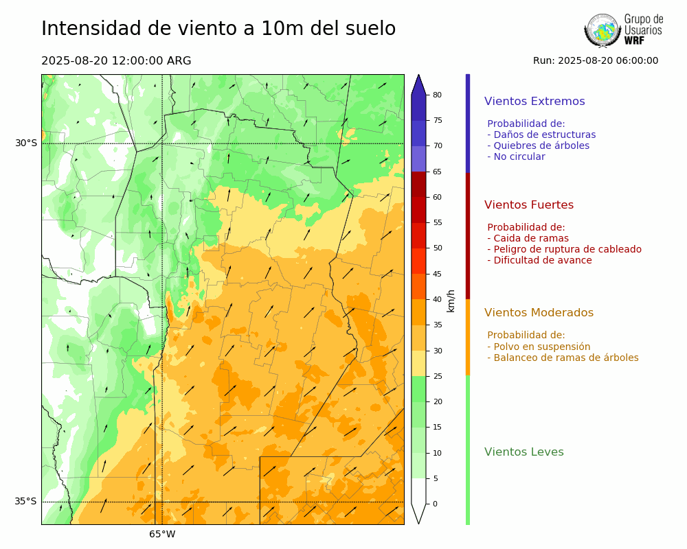 • Intensidad máxima: 20.70 km/h (20/08/2025 12hs.)