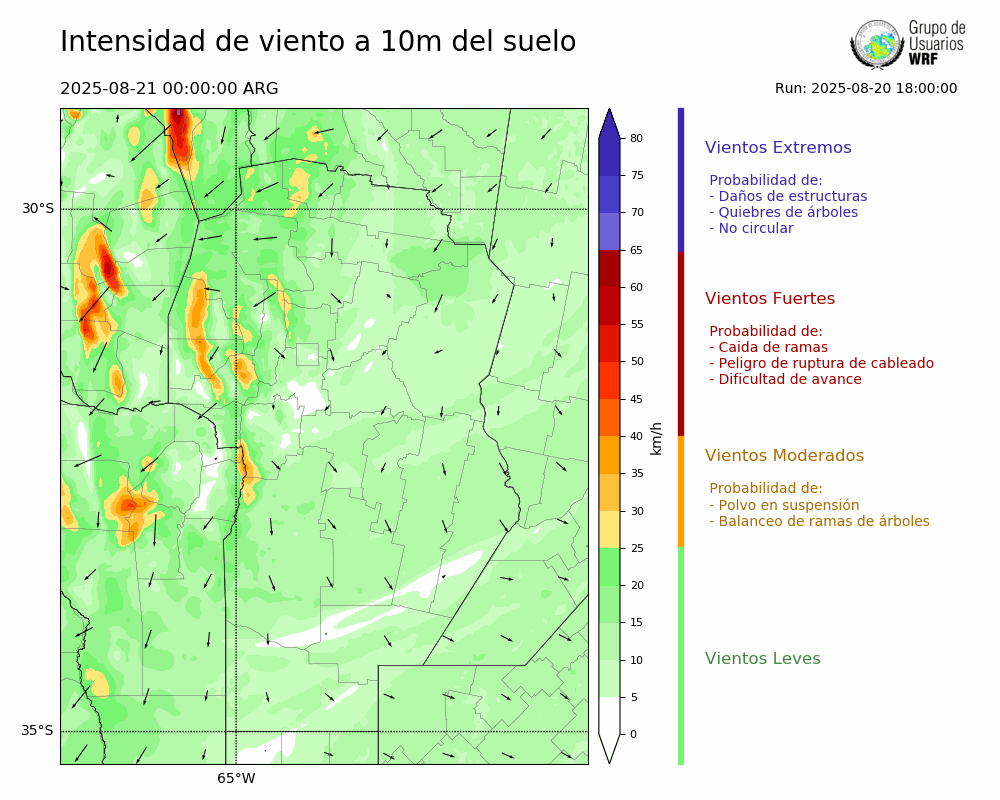 • Intensidad máxima: 9.05 km/h (21/08/2025 21hs.)