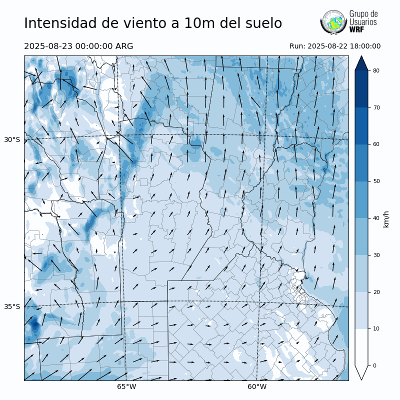 • Intensidad máxima: 15.48 km/h (23/08/2025 10hs.)