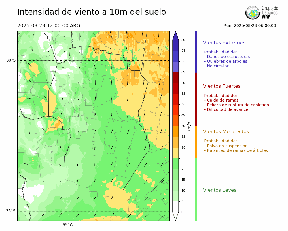 • Intensidad máxima: 14.04 km/h (23/08/2025 12hs.)