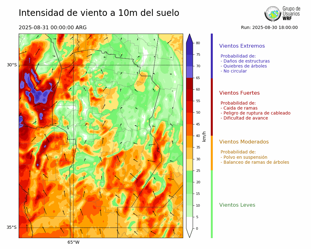 • Intensidad máxima: 26.85 km/h (31/08/2025 02hs.)