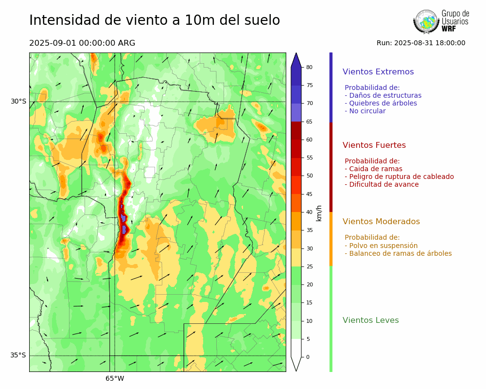 • Intensidad máxima: 7.45 km/h (02/09/2025 21hs.)