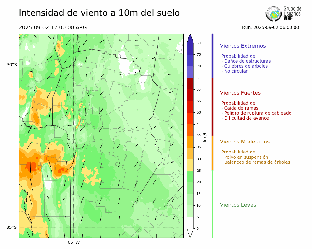 • Intensidad máxima: 16.05 km/h (02/09/2025 15hs.)