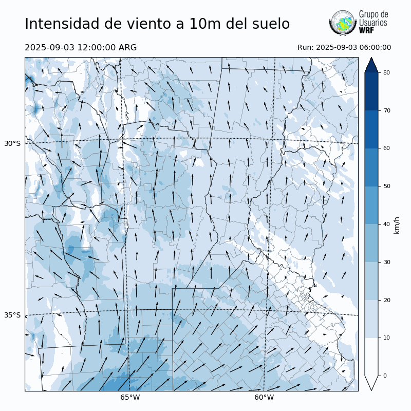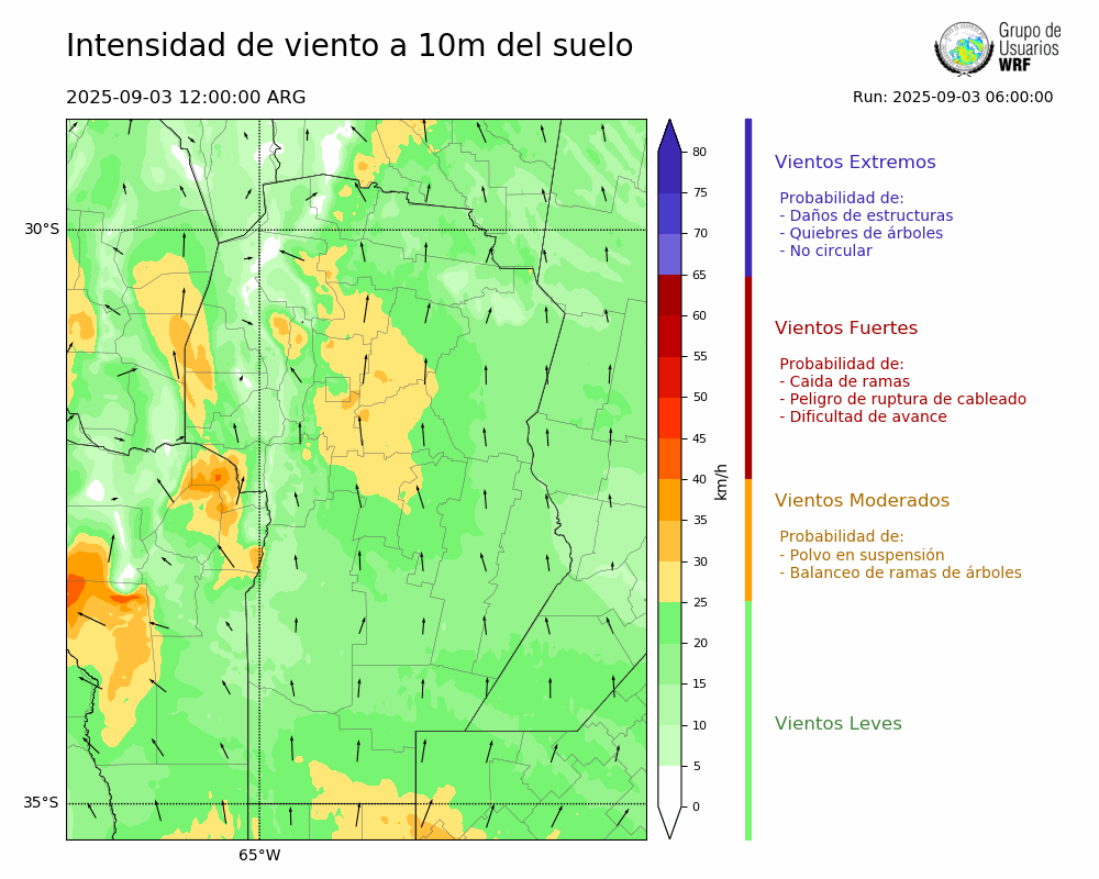 • Intensidad máxima: 20.48 km/h (03/09/2025 12hs.)