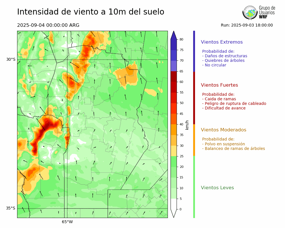 • Intensidad máxima: 17.24 km/h (04/09/2025 06hs.)