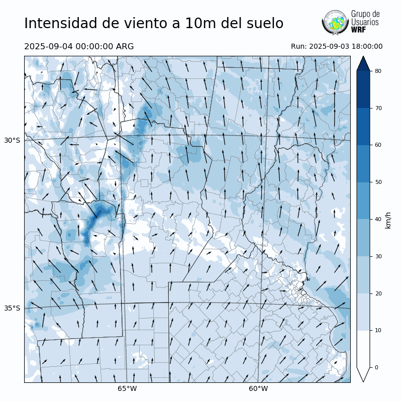 • Intensidad máxima: 7.09 km/h (06/09/2025 05hs.)